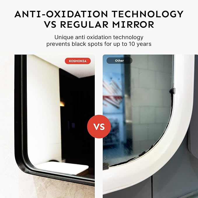 - Clear Reflection & Distortion-Free - Engineered with high-definition glass, this Kosmonia bathroom mirror ensures precise 1:1 image reflection without distortion. Perfect for providing a crisp, clear view when grooming or applying makeup.