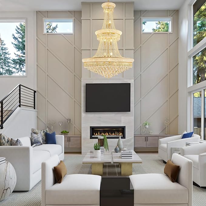 - 【Large Gold Crystal Chandelier】:The dimension of crystal chandelier is H47* W31.5inches, You can adjust the length of chains and wires according to your needs(Chain length is 59"), chandelier net weight approx 96 pounds.(Note: Please check the ceiling load before purchase)