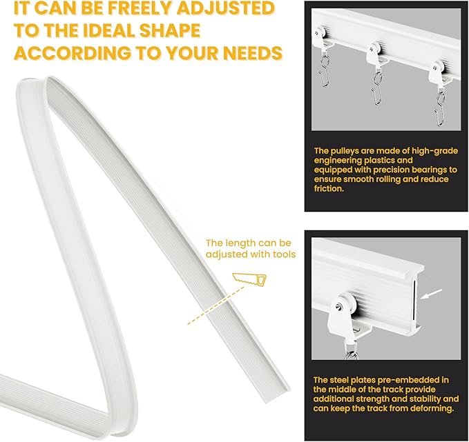 - Flexible Ceiling Track System: Our curtains come with a flexible ceiling track system that allows for easy installation and adjustment. This track system is designed to accommodate various room layouts and can be easily mounted to suit your specific needs, making it a versatile solution for any space.