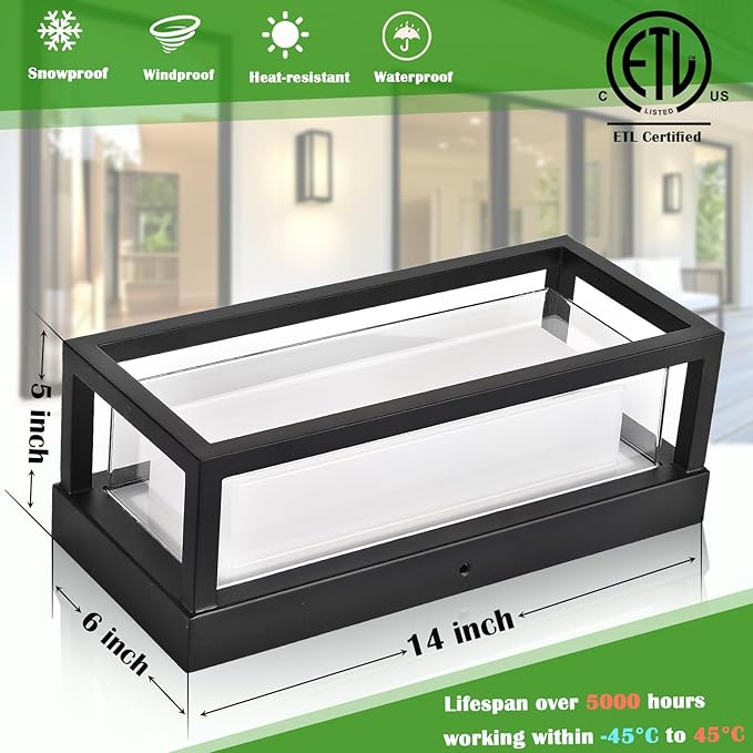 - Modern Minimalist Aesthetic: Featuring a sleek black aluminum frame and a frosted PC cover, iYogaled color changing outdoor porch light complements both modern and classic exteriors. The up-and-down lighting effect adds depth and style, enhancing the ambiance of your porch, garage, or garden with a contemporary touch.