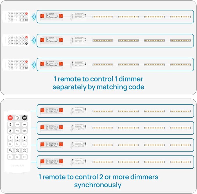 - 【Dimmable by included LED dimmer】---10%~100% stepless dimming by included LED dimmer/remote. NOT compatible with existing AC Wall Dimmers.