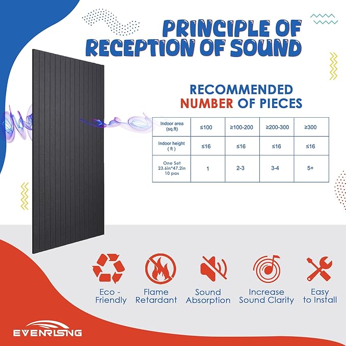 - đăWIDELY USEă This large sound absorbing panels can well absorb the echo and noise,Effectively improve your sound environment and quality.such as home studios, gyms, game rooms, computer rooms, video shooting venues, rehearsal rooms, concert halls, recording studios, schools, conference rooms, Home theater, office,and more.