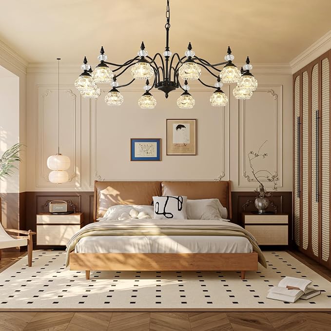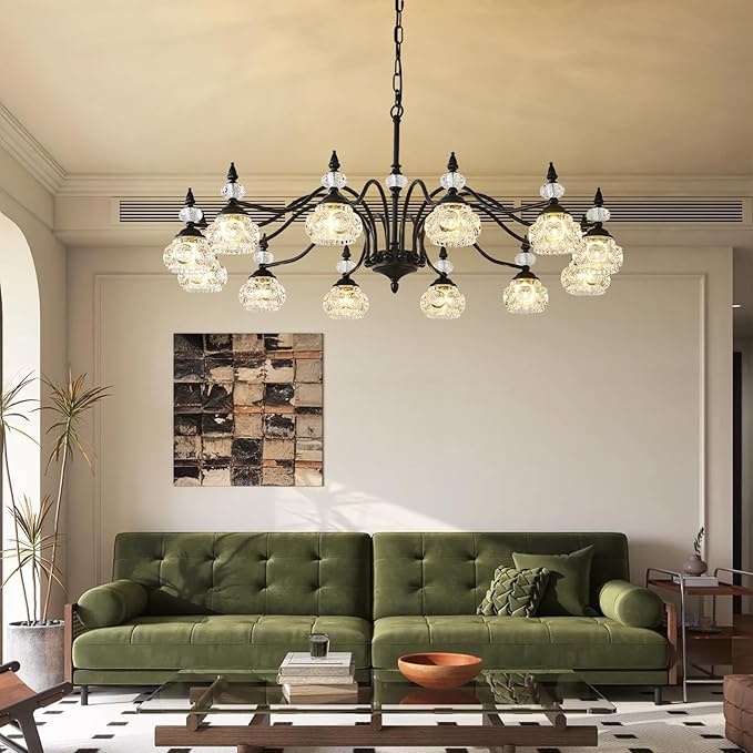 42 Inch Vintage Chandelier, 12-Light Crystal Chandeliers for Dining Room, Vintage Light Fixtures for Living Room, Kitchen Island, Foyer, Bedroom, Victorian Decor, G9