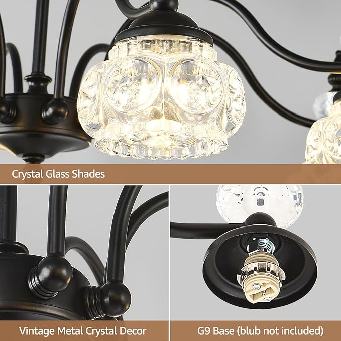 - Dimming & Bulb Type -- The crystal chandeliers for dining room are featured with dimming function supported by correct bulbs and dimmer switch. (Bulbs/Switch NOT INCLUDED). The antique chandelier works well with any G9 bulbs, compatible with 40 watt or lower LED, CFL, halogen lamp, Edison bulb or incandescent bulb