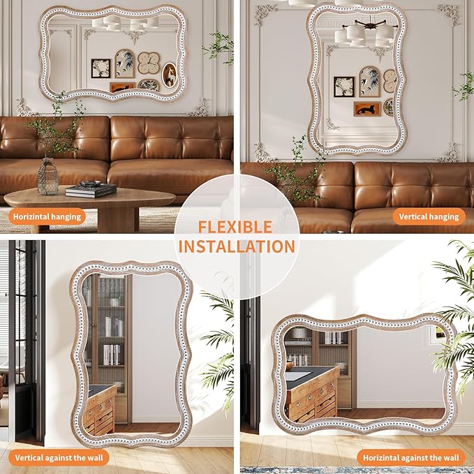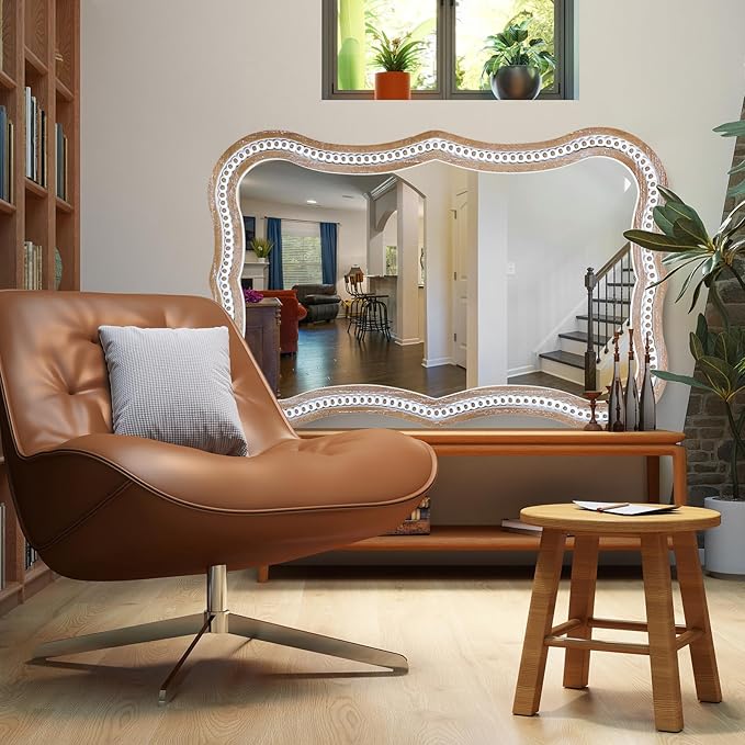 - 4. Perfect Size: At 35" x 24", this decorative wall mirror is large enough to make a statement while blending seamlessly with your home decor, whether as a boho mirror for wall or a mirror for bathroom wall