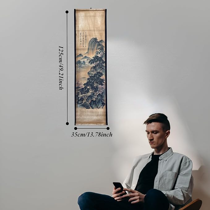- 【Ready-to-Hang Scroll Design】Foldable scroll with a wooden bar frame offers effortless setup and a traditional hanging aesthetic.