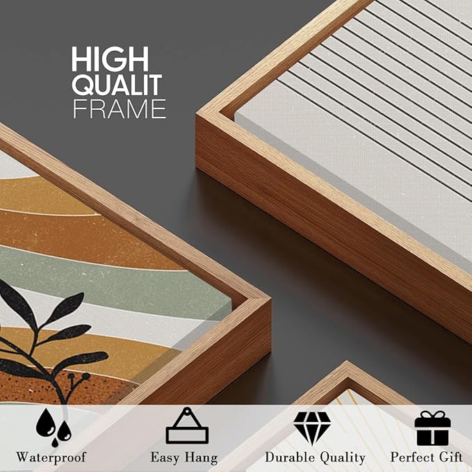 - 【Mid Century Modern Design】This boho wall art blends elements such as the sun, plants and lines, creating a bright and cheerful atmosphere. The overall design is both brimming with artistic vitality and embodying a serene beauty, bringing a unique visual enjoyment to your space.