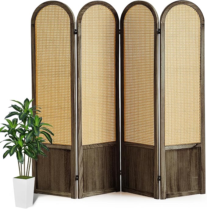 - Protect Privacy Room Divider: This 5.6 ft tall room divider panel can easily provide you with extra private space, protecting your privacy in the living room, bedroom. You can also use the classical decorative room divider panel as a background wall to decorate your space. The vents on the 4 panel room divider allow some light to pass through without making the space appear dark, which can maintain air circulation, but may lose some privacy protection. Please purchase with caution if you mind.