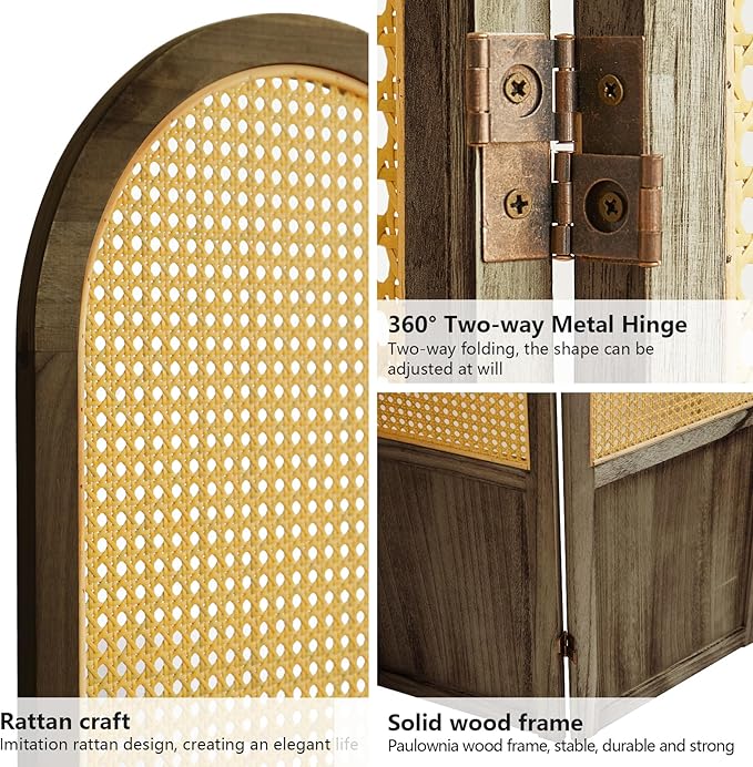 - Freestanding Folding Privacy Screen: Each panel of the Asnefeli rattan room divider is 15.7 inches wide, and each panel is connected by 2 two-way metal hinges. The room divider panel can be folded in any direction according to your preference, and the shape of the wooden privacy screen can be adjusted according to your needs. The room divider screen is easy to store and takes up only a small space when fully folded.