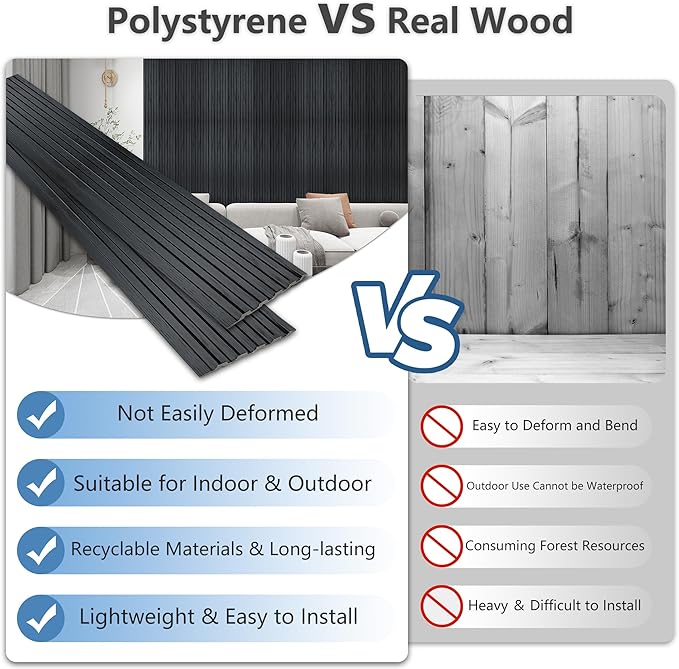 - SUSTAINABLE CHOICE: Our slat wall panels are made from recyclable and reusable polystyrene, free from harmful chemicals and toxins. Promoting sustainability while safeguarding health, our wall panels are a responsible choice for you and the environment
