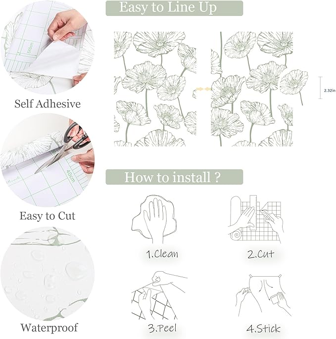- 【EASY TO USE】Just peel and stick. No extra glue and no experience required. The wallpaper has grid lines on the back for easy cut as needed. Waterproof, oil-proof, durable,easy to clean,just wipe it with a cloth.