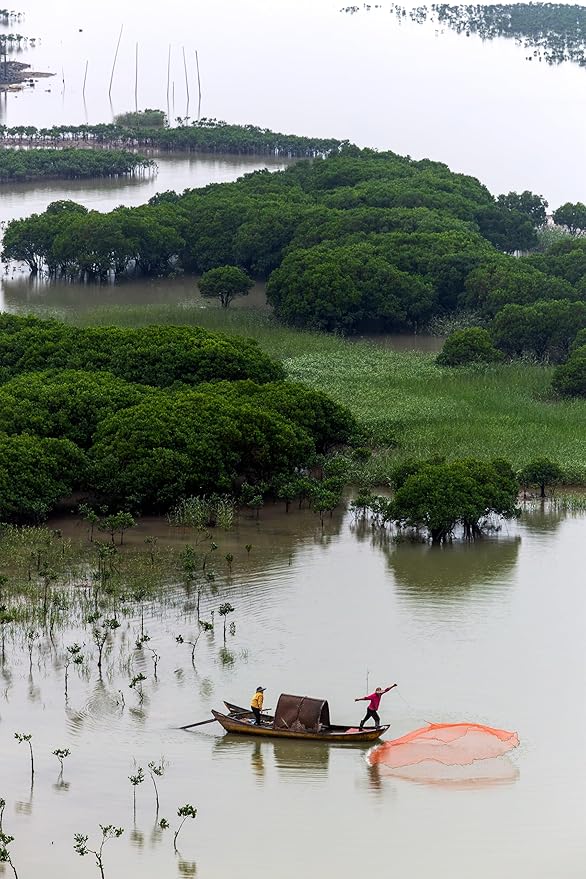 Oriental Beauty: Stunning Feng Shui Landscape Wall Art Vertical Prints for Home Decor in 3 Sizes (Casting Nets in the Mangrove Waters, 24" x 36", Oriental Beauty)