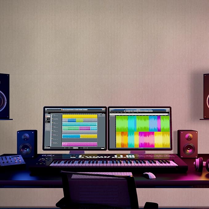- đăWIDELY USEă This large sound absorbing panels can well absorb the echo and noise,Effectively improve your sound environment and quality.such as home studios, gyms, game rooms, computer rooms, video shooting venues, rehearsal rooms, concert halls, recording studios, schools, conference rooms, Home theater, office,and more.