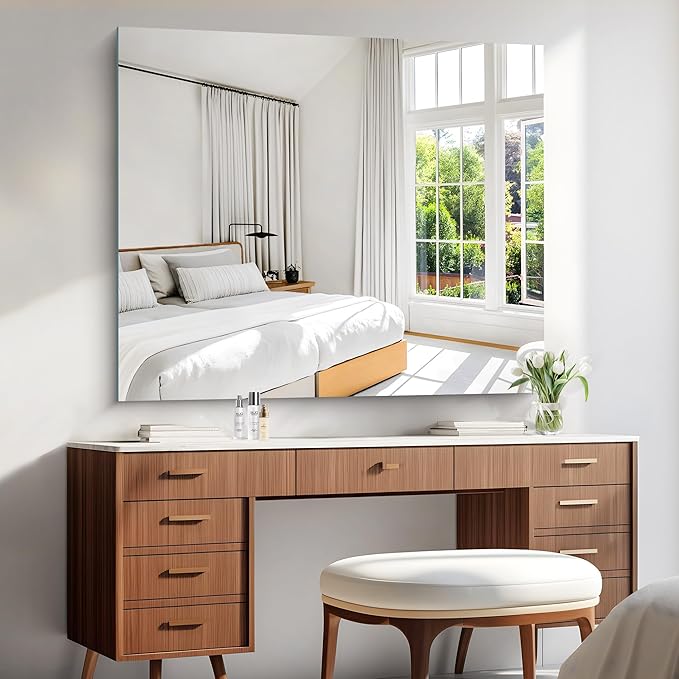 - SHATTERPROOF MIRROR : KOCUUY no-frame mirrors for wall are made of HD 3mm premium glass, which is lightweight and more eco-friendly than conventional mirrors. Our frameless wall mirror is also upgraded with shatterproof feature which guaranteeing both secure handling