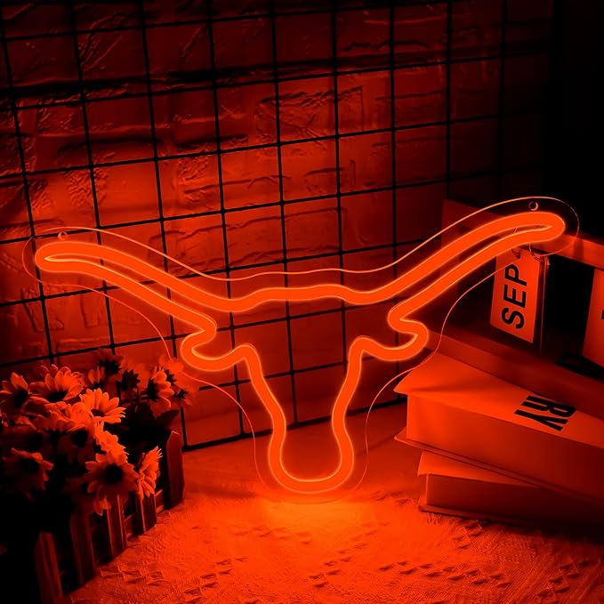 Longhorns Neon Sign for Wall Decor University LED Neon Light Sign Football Signs Longhorn Decor for Man Cave Graduation Gifts Dorm Decorr for College Students Men Teens,Size 14.6 * 8.3 in(FMXD096-01)