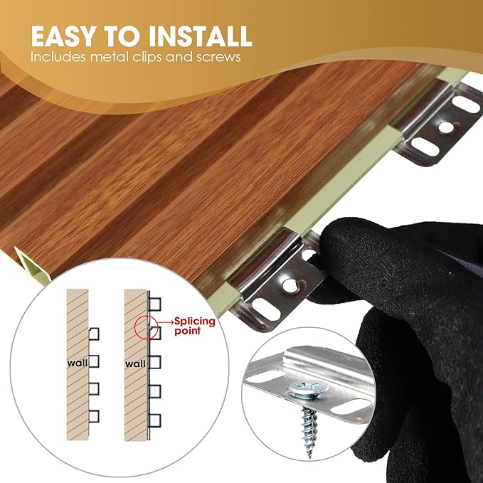 - 【Easy DIY】Our WPC wall panels are user-friendly and easy to install. Simply buckle them up, screw them in using the included accessories, and cut to size with any power saw if needed. Perfect for DIY enthusiasts of all skill levels
