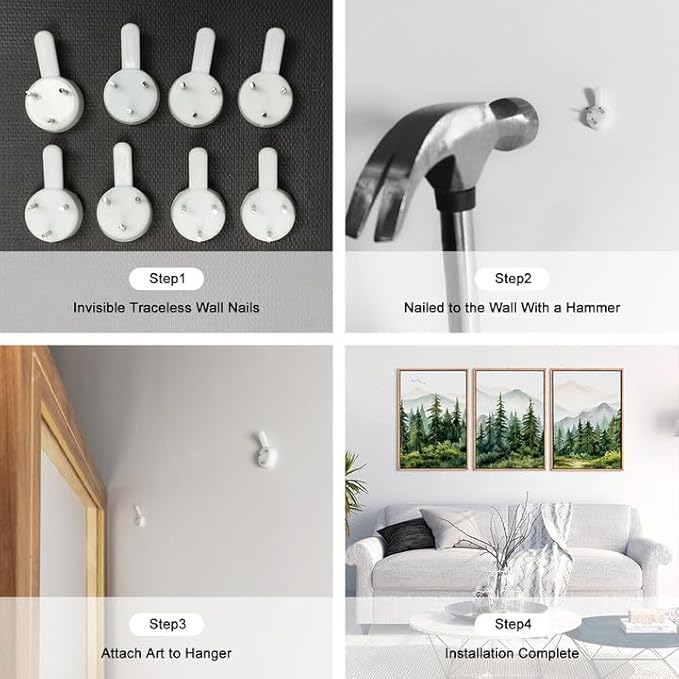 - 【Easy To Hang】This mountain range artwork set of 24"x36" is easy to hang. Begin by determining the desired location, ensuring it is level and aligned with your preferences. Then, using the included non-trace nails, securely attach the frame to the wall.
