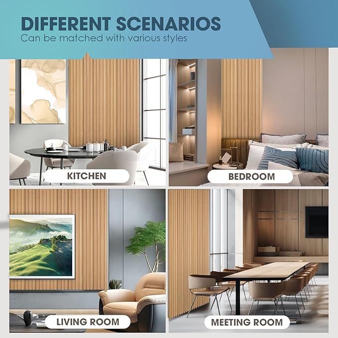 - 【Versatile Application】Ideal for a variety of settings, our WPC wall panels are suitable for residential and commercial use. Perfect for interior walls, ceilings, offices, basements, bedrooms, living rooms, kitchens, home theaters, conference rooms, studios, and more