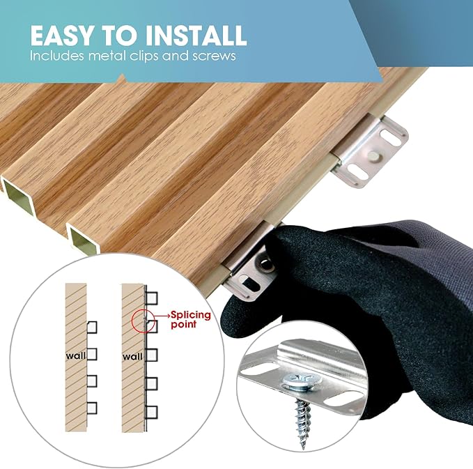 - 【Easy DIY】Our WPC wall panels are user-friendly and easy to install. Simply buckle them up, screw them in using the included accessories, and cut to size with any power saw if needed. Perfect for DIY enthusiasts of all skill levels