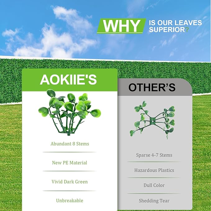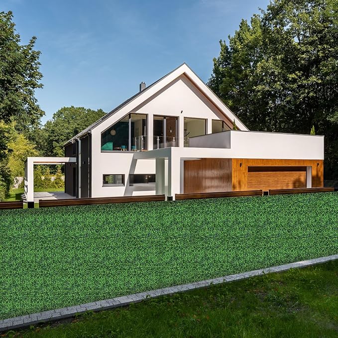 - 【Realistic & Thick Artificial Hedge】 Each package has 24pcs 20x20 inch artificial boxwood panels, total coverage area of 66.6 sq.ft. The thickness of the greenery backdrop is 2 inches which looks more realistic. The thick hedge is dense and can cover the background well and privacy. Bonus: 100 extra zipper tapes for easy and cost-effective installation