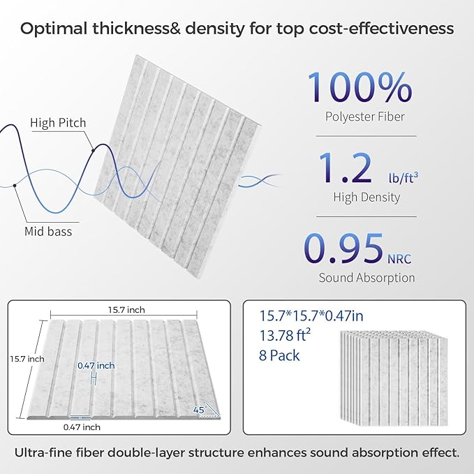 - 【Wide Range of Uses】: The elegant and generous lines of the decorative wall panels not only enhance the visual effect of the space, but we also provide a variety of color options, allowing you to create a unique space atmosphere through clever combinations, perfectly matching your various decoration styles. Noise cancelling wall panels is widely used in various scenarios such as musical instrument rooms, podcasts, recording studios, piano rooms, cinemas, living rooms, bedrooms, offices, etc