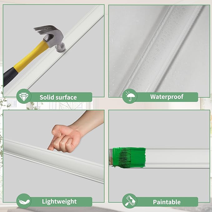 - Practical design: The crown molding enhances visual appeal and elegance with exquisite shapes. It seamlessly conceals ceiling-wall joints while protecting wall corners from damage