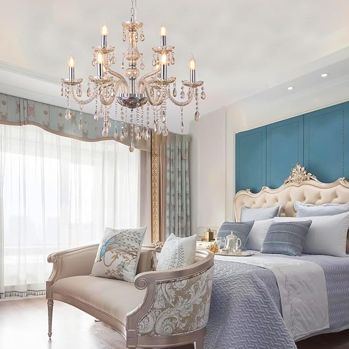- 【Finely Cut Real Crystal Pendants】Our crystal chandeliers is finely cut crystal pendants, beads, and leaves. Hand-cut crystal deliver a luxurious look create beautiful reflected and refracted sparkle.Lamp body is glass.
