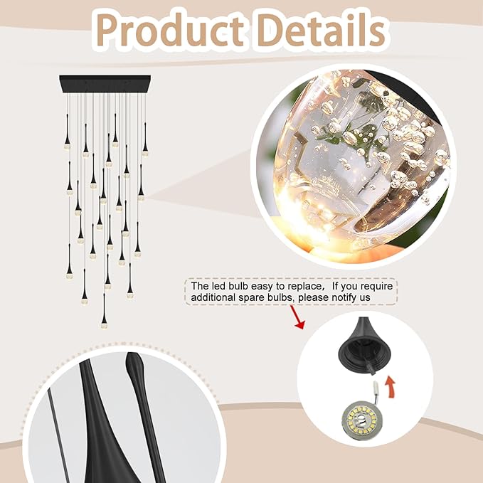 - 【Crystal Raindrop Chandelier Design】 : Absolutely beautiful,elegant style K9 bubble crystal and hardware pendant light.In addition to its beautiful shape,it is suitable for entryways,staircases,hallways, foyers,hotels,and apartments.