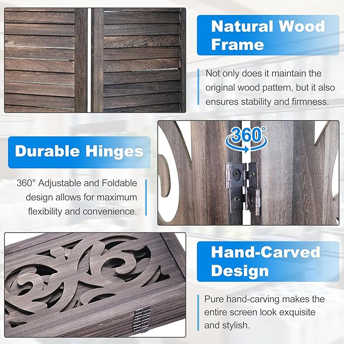 - đ ď¸Instant Setup with Premium Craftsmanship: Our wooden room divider arrives fully assembled, boasting meticulous work by skilled carpenters. Say goodbye to installation headaches and hello to instant functionality â unfold and enjoy its elegance and practicality straight out of the box!