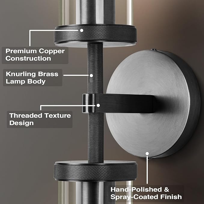 - Premium Modern Design: Elevate your home decor with our elegant wall sconce lights. Featuring a sleek brass base and upgraded thickened glass, this wall sconce light provides soft, ambient lighting. The modern, knurled texture adds a sophisticated touch, perfect for bathroom vanities, bedroom wall lights, or any modern space.