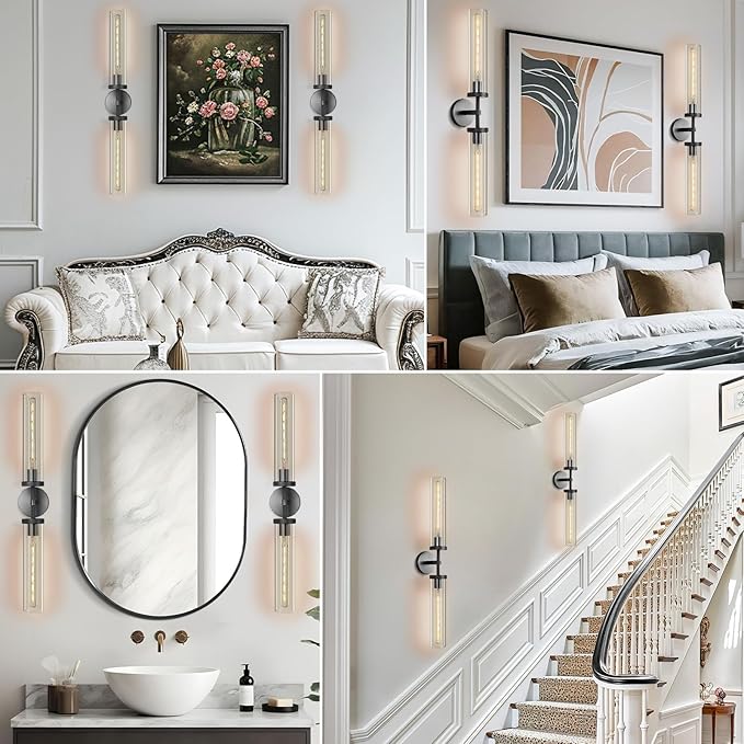 - Perfect Size for Any Space: With a total length of 30" and a glass tube size of 12.8" L x 2.5" D, our modern sconces wall lighting is ideal for a wide variety of settings. Each wall light weighs 5.5 lbs, making it perfect for placement beside mirrors, above vanities, or along hallway walls. This durable design suits both home and commercial spaces.