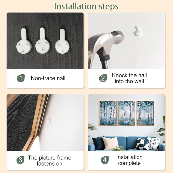 - DREAMY BIRCH FOREST WALL ART: The decorative paintings feature a serene Birch Trees scene with white and blue as the primary tones. They skillfully integrate elements of nature and abstract shapes to create a fresh and tranquil aesthetic.