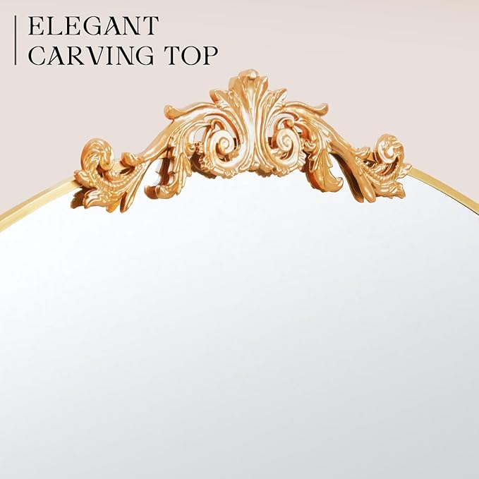 - Ornate Baroque Style: Elevate your space with the exquisite carving top mirror and delicate corner accents of this wall hanging mirror; It's not just a mirror but a piece of art that brings a touch of romance and elegance, ideal for those who love unique and luxurious decor
