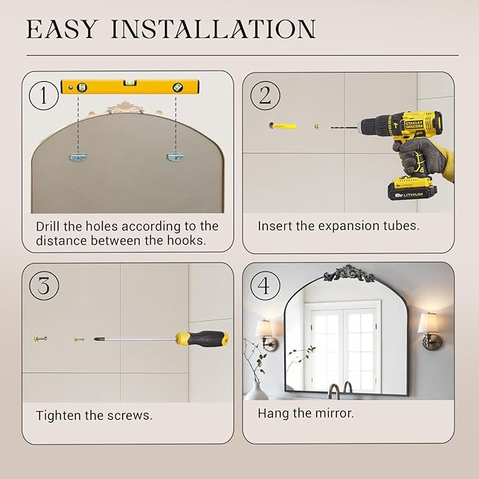 - Easy to Install: Effortlessly hang the Arched Mirror with the 2 hooks and included screws; In just a few easy steps, you can mount it securely on your wall, adding instant charm to any room