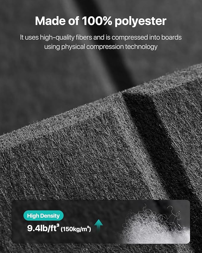 - Premium Acoustic Material: Designed as high-density sound proof foam panels, these 100% polyester fiber acoustic panels optimize audio precision and durability.