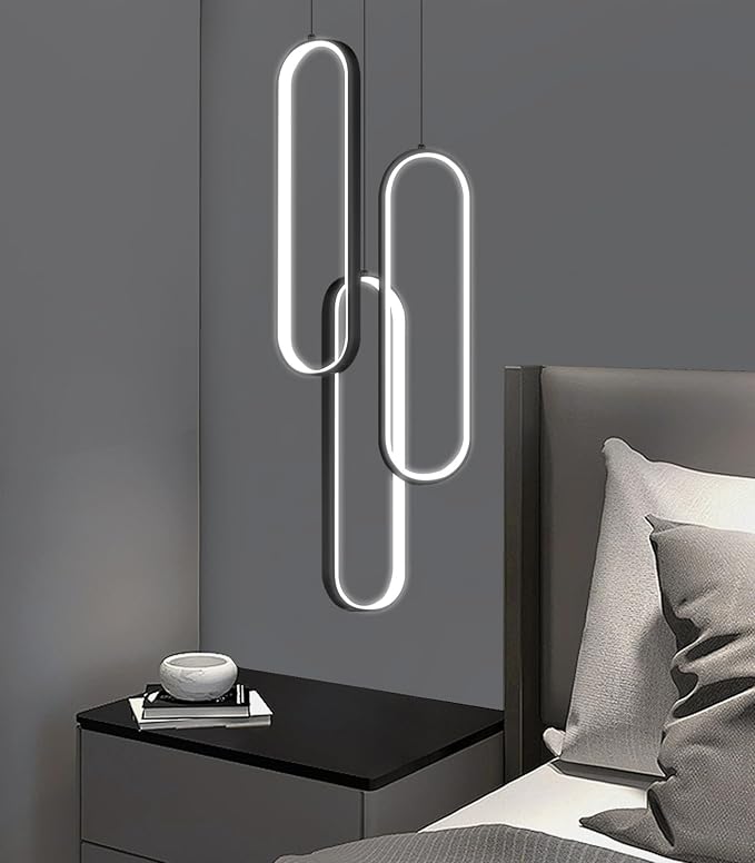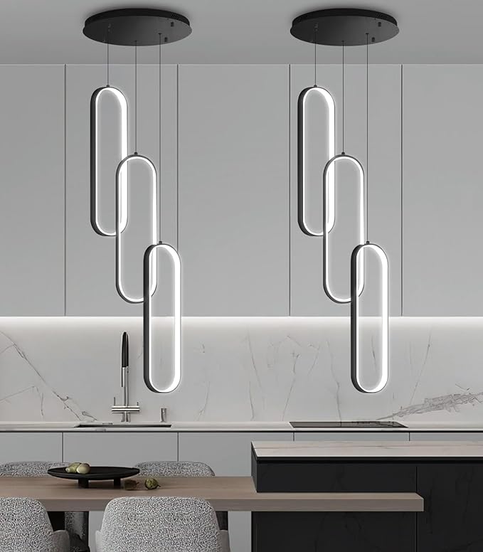 - 【Wide Applications】Design various shapes of kitchen island 3 rings led chandelier by adjusting the strings of rings easily via cable locking pins. Black ceiling light, cable length adjustable 3.9-59 inch. Suitable for any room like a kitchen Island, dining room, foyer, staircase, entrance, hallway, villa, living room, study room, showroom, hotel, etc