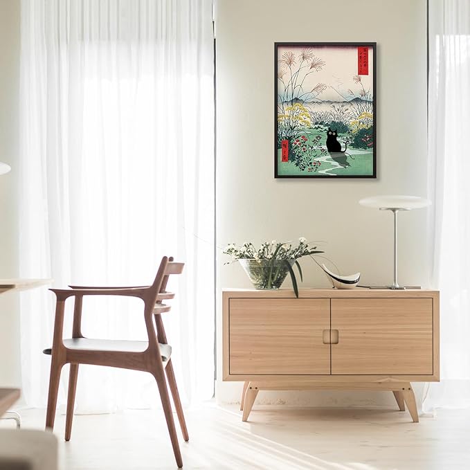 - Cat-Themed Wall Art:This Japanese canvas wall art features a humorous black cat design, ideal for cat lovers.