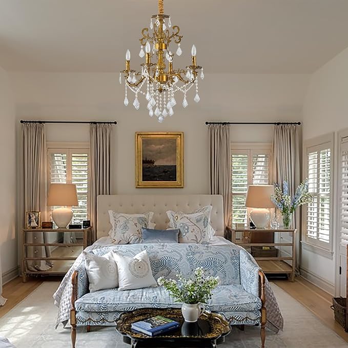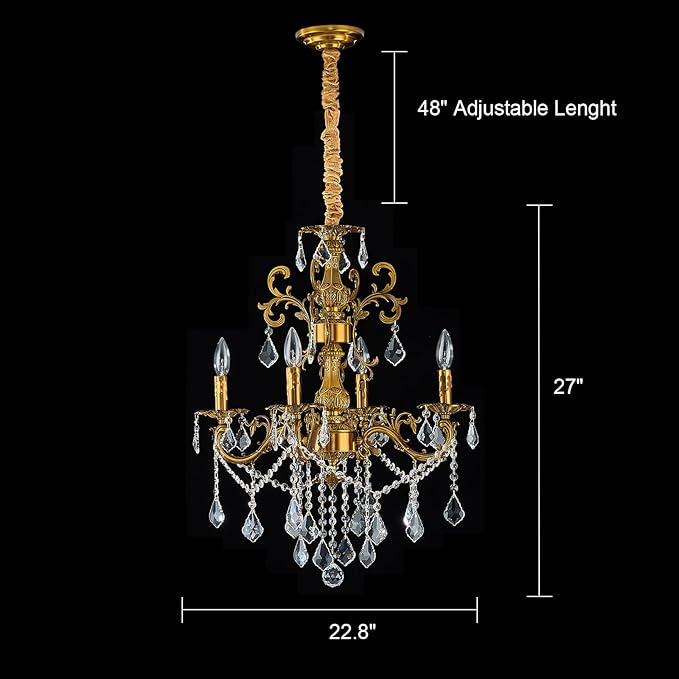 4 Light Classic Traditional Candle-Style Crystal Chandeliers for Dining Room Living Room Bedroom entryway Antique Gold Finish