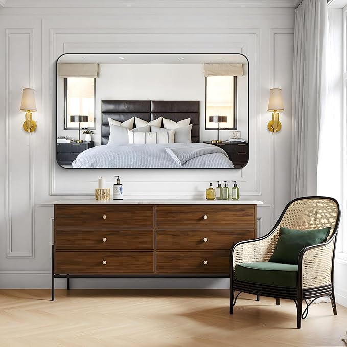 KOCUUY Black Bathroom Mirror 60"x36", Large Vanity Mirror with Rounded Corner, Metal Black Frame with Mordern Design for Bathroom, Living Room, Entryway, Hang Horizontal/Vertical