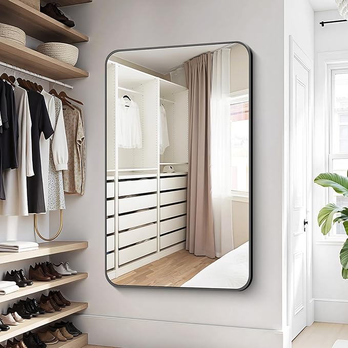 KOCUUY 55x36 Black Bathroom Mirror, Large Matte Black Vanity Mirror, Tempered Glass Mirror for Bathroom Wall, Black Rounded Rectangle Mirror Modern Decor for Bedroom, Living Room, Farmhouse, Entryway