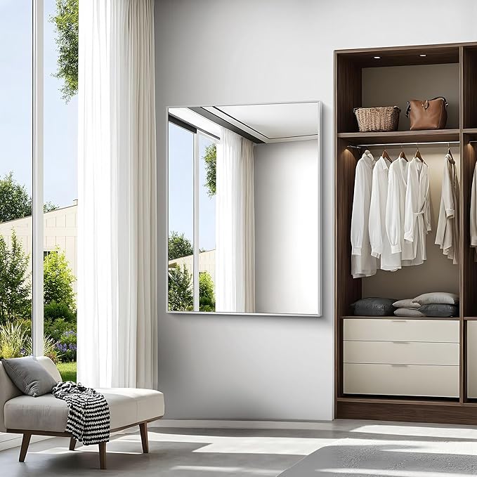 - CLEAR REFLECTION & NO DISTORTION : Silver bathroom mirrors for wall utilizes a four-layer floating technology to provide a high-definition reflection,presenting a clear visual effect without any distortion or bloating.