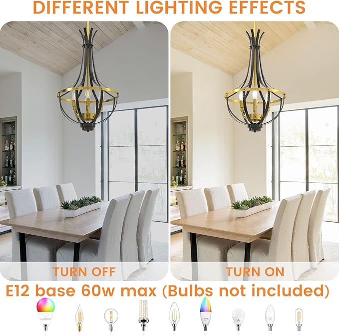 - ✨Modern Black and Gold Chandelier Inspiration Design Style - This Black and Gold 6 light pendant Lights with 6 X E12 socket, provides bright lighting and brings elegant and fancy vibe for your home. A great choice for living room, dining room, kitchen island, restaurant, hotel