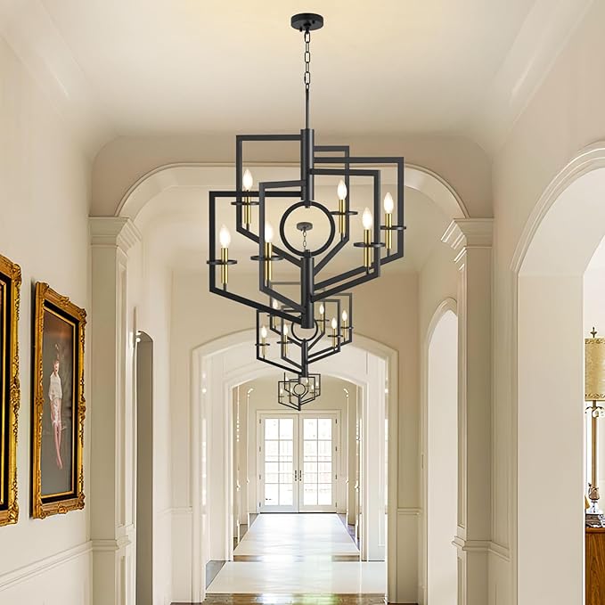 - ✨Foyer Lighting Fixtures Design Inspiration - This large foyer chandelier is crafted with a black swivel frame and gold swivel candelabra base. Its craftsmanship and smooth lines make it look like a blooming flower when it opens. It is the perfect complement to the lamps in your home. This entryway chandelier the perfect choice for you! More and more customers are picking this fixture for better comfort and to meet the new popular styles. This lantern pendant light requires no assembly. Very easy to use. Beautiful farmhouse chandelier for entryway is suitable for all decorating styles.