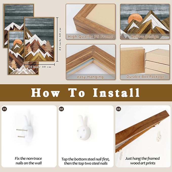 - 【Mountain Wall Art Material】The frame design protects the painting from damage while increasing the durability of the product.The backplane is designed to prevent light from passing through the painting.Easy to install, can easily hang on the wall.