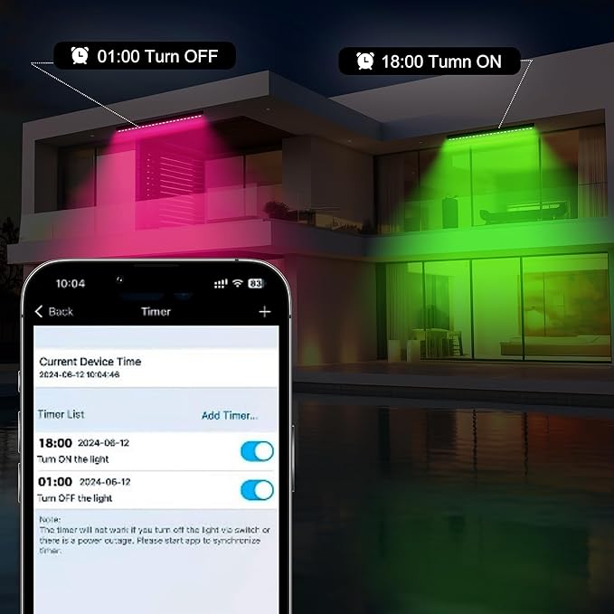 - Music & Microphone Sync: The outdoor/indoor wall washer light will change color according to the rhythm of the music via the music from the APP or the music around the microphone on the APP. Stage light bar is suitable for DJ or party stage decoration, which liven up atmosphere vibrant