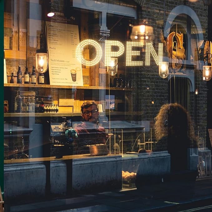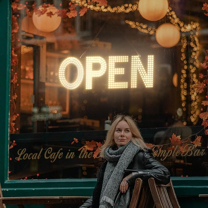 - Eye-Catching Open Sign: Our large-sized LED open sign (22"x7") is designed to attract customers, whether it's day or night, in the city or on the roadside.