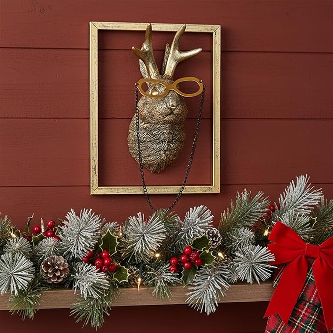 Animal Heads Wall Decor (Includes Metal Frame) Resin Animals Sculptures Head Wall Hanging Decoration Gold vintage Wall Sculpture for Living Room Bedroom Office(Jackalope)
