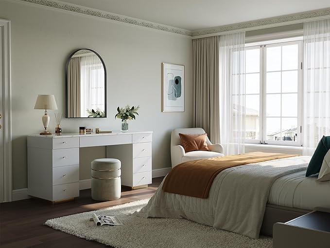 - Use Widely Decorative Mirror: This is a stylish and functional arched mirror. You can shoose to mount to wall and leaned against the wall. Used as a vanity mirror or a decorative mirror in your bedroom, living room, bathroom, vanity room, gallery wall, entryway, hallways, salons. An ideal addition to drawing people's eyes and getting more praise