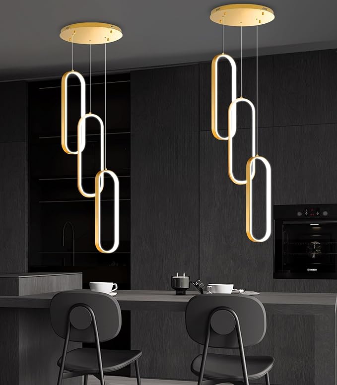 - 【Wide Applications】Design various shapes of kitchen island 3 rings led chandelier by adjusting the strings of rings easily via cable locking pins. Black ceiling light, cable length adjustable 3.9-59 inch. Suitable for any room like a kitchen Island, dining room, foyer, staircase, entrance, hallway, villa, living room, study room, showroom, hotel, etc