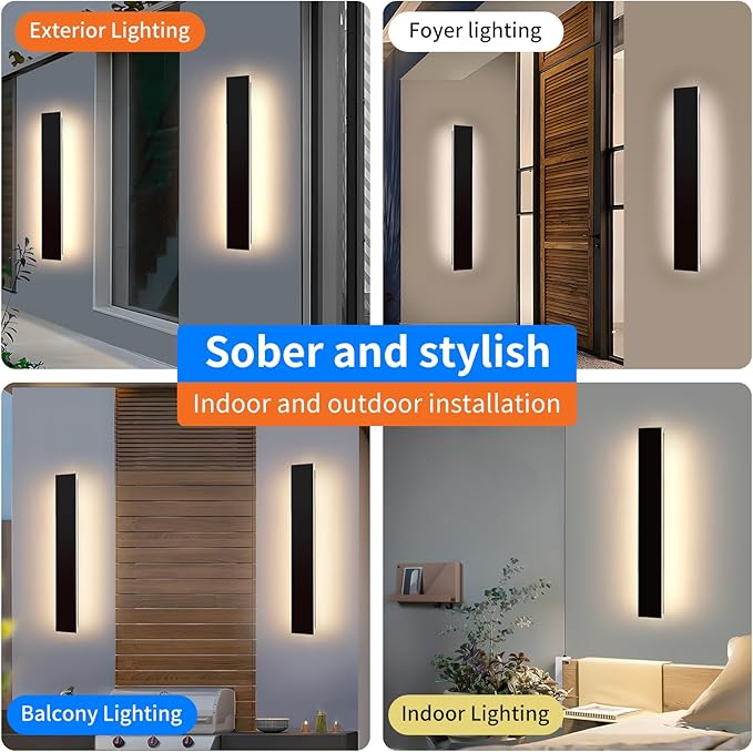 - 【Durable All-Weather Performance】 Featuring matte black aluminum housing and frosted acrylic diffuser, these linear sconces resist fading, rust, and corrosion. IP65 waterproof rating ensures year-round protection against rain, snow, and dust – ideal for outdoor/indoor use. -15°C to +45°C operating range
